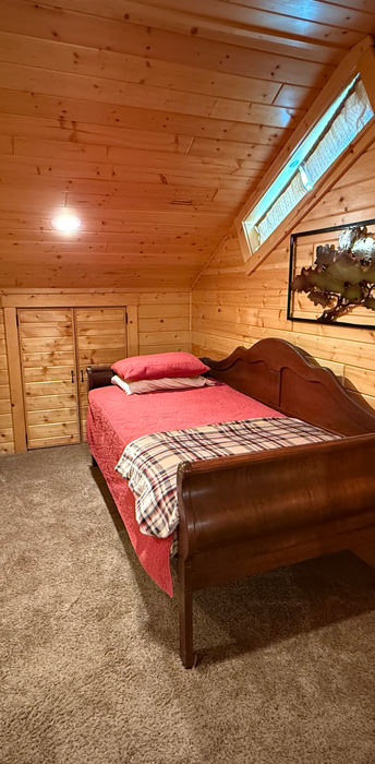 SLEEPS 7: 2 Bedrooms include 1 Queen bed in each; 1 single, day-bed in the walk-through bedroom; 1 twin sized pull out couch; 1 single bed in the lofted area, perfect for kids. Gas fireplace! Kitchen includes refrigerator, stove, microwave and other small appliances. Table service and dinnerware provided. Linen provided. Unit has 2 full bathrooms; both with tub/shower. Outdoor area has picnic table, gas grill and campfire pit! Free WiFi included.